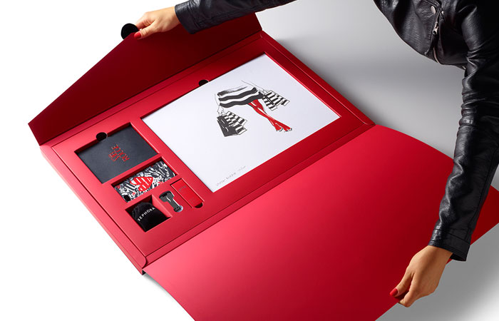 在前面的每一個(gè)圓滑,黑色,16“x24”信封,是收件人的姓名寫(xiě)在紅色的書(shū)法。內(nèi)部是大量柔軟的胭脂紅,每按試劑盒項(xiàng)目很好地存放在自定義威爾斯。包括一個(gè)VIB胭脂歡迎包,一個(gè)全尺寸的咬唇膏在自定義胭脂紅色燈罩,絲芙蘭品牌iPhone案件和耳機(jī),和限量版編號(hào)的版畫(huà)藝術(shù)家路維薩·布菲特簽署。新聞稿本身被加載到一個(gè)光滑的黑色USB驅(qū)動(dòng)器在一個(gè)關(guān)鍵的形狀。從絲芙蘭個(gè)人歡迎信放在上面。”